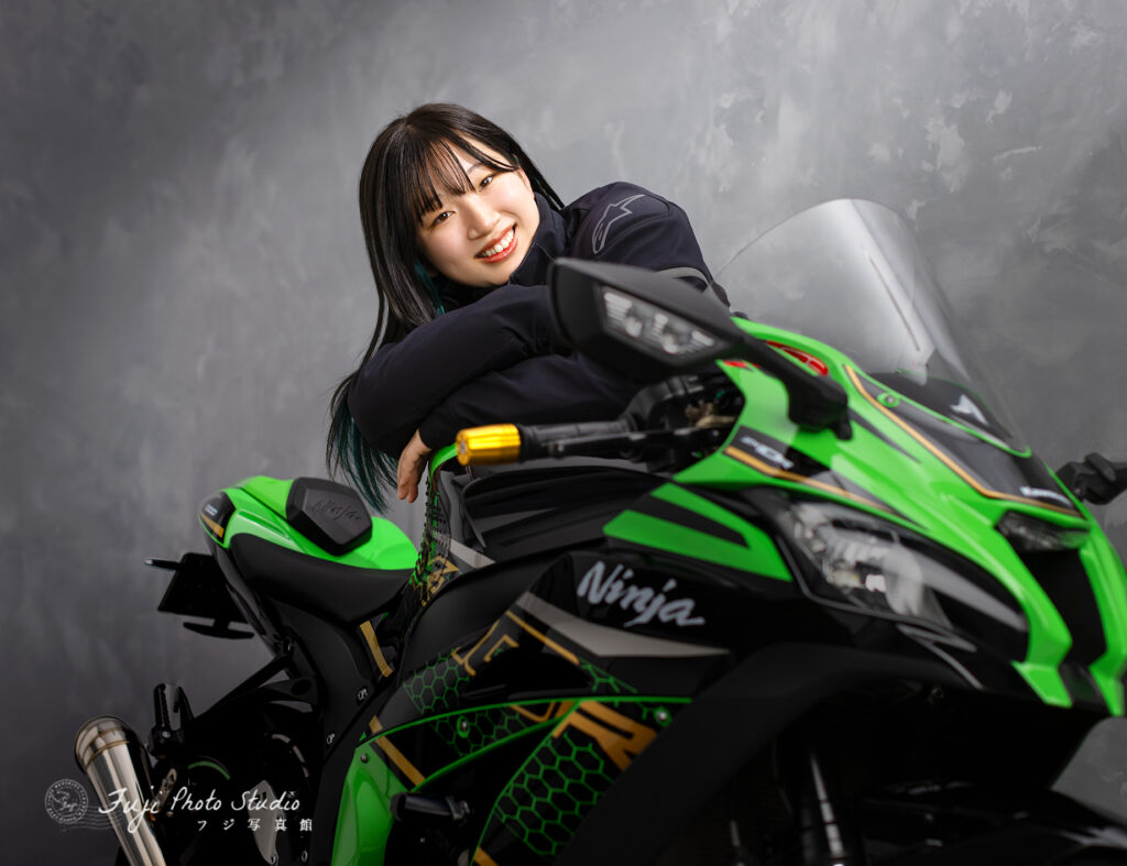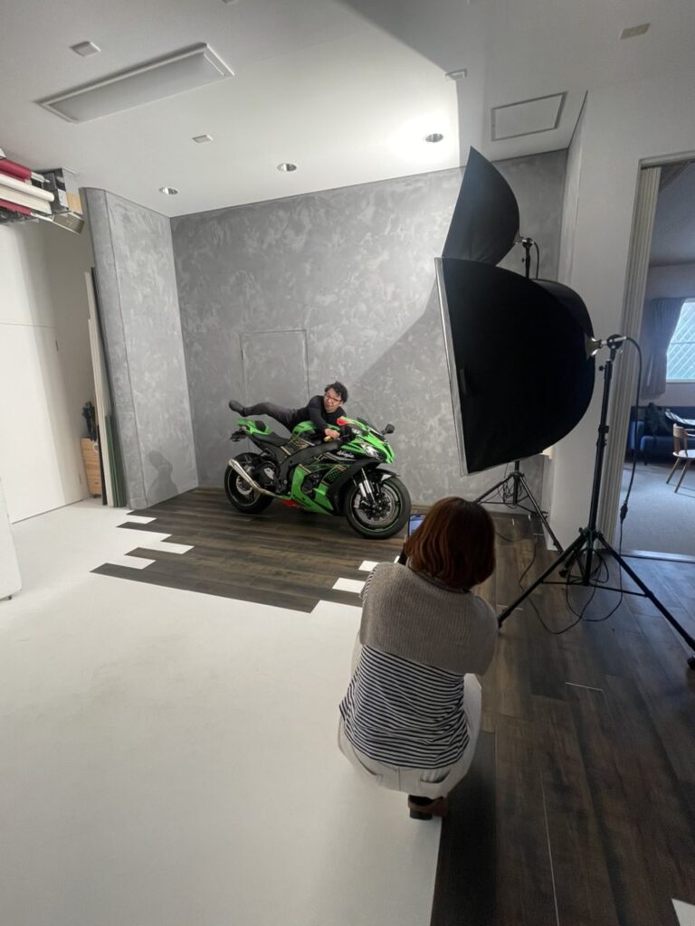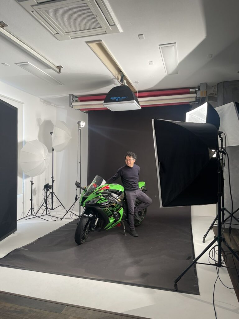 スタジオにグググとバイクを押し入れて、ウエアに合うライティングをしながら色々撮らせていただきました.